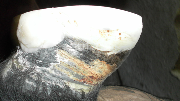Die erste Möglichkeit sind Hufverbände, die eine weitere Abnutzung stoppen sollen. Hufverbände sind allerdings nicht sehr robust. Die besten nutzen sich schon nach ein paar Tagen im Zehenbereich bis auf den Huf ab. Krankenschuhe, die schnell verdrehen können, scheuern, abgezogen werden, oder einfach beim Dauereinsatz kaputt gehen, erweisen ihren Dienst bei einer Gruppenhaltung eher bedingt.