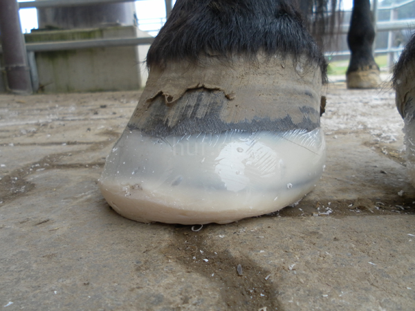 Die weitere Möglichkeit die Abnutzung zu Stoppen und den Huf zu Schonen, gibt es durch den Aufbau einer künstlichen Schicht direkt auf den Tragerand des Hufes, um zum Beispiel bei plötzlich zu stark abgenutzten Hufen, einen Schutz für die Sohle zu bitten.