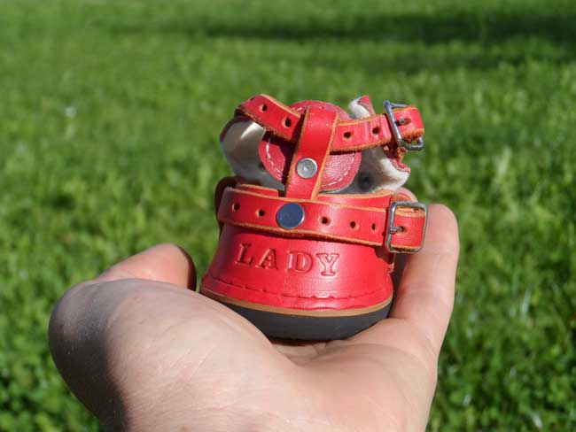Bemerkenswert ist die Anfertigung nach Mass. Sie müssen nur den Huf (die Hufe) nach den von der Herstellerin zugeschickten Informationen ausmessen und abwarten, bis der massgeschneiderte Schuh bei Ihnen zu Hause ankommt.