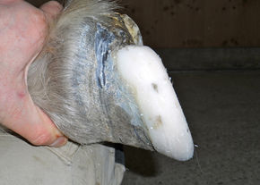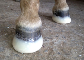 Die weitere Möglichkeit die Abnutzung zu Stoppen und den Huf zu Schonen, gibt es durch den Aufbau einer künstlichen Schicht direkt auf den Tragerand des Hufes, um zum Beispiel bei plötzlich zu stark abgenutzten Hufen, einen Schutz für die Sohle zu bitten.