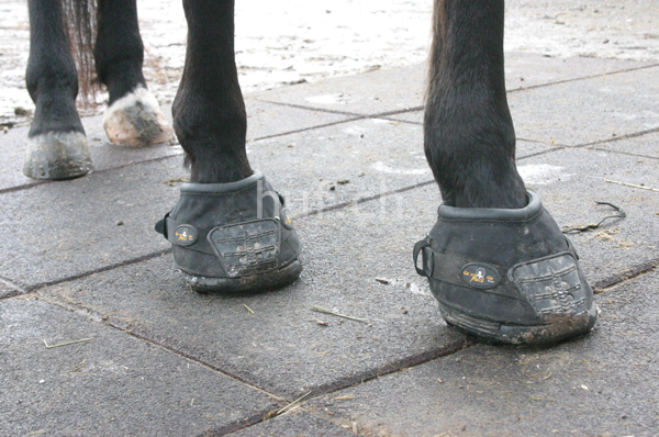 Dank seiner Form, welche nach dem Anziehen, die Fessel gut umschliesst, ist er kaum zu Verlieren. Was sich allerdings als ein Nachteil erweisen kann. Es braucht etwas Angewöhnungszeit bis die Manchete, die zu hoch konstruiert wurde und direkt an der Beugeseite der Fesselhaut anliegt, etwas geschmeidiger wird und nicht scheuert. Es gibt auch hier eine Abhilfe in Form von, einer Art Socke, welche in den Hufschuh eingelegt werden soll. Allerdings wird das anziehen des Hufschuhs immer abenteuerlicher.