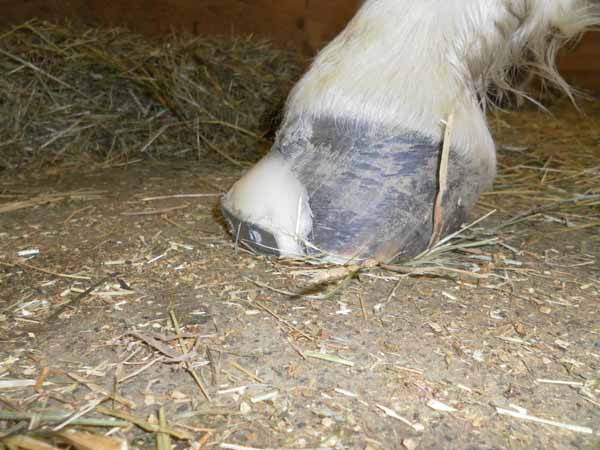 Starke Zehenwandabnutzung bei einem Barhufpferd